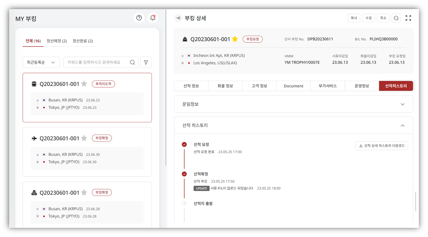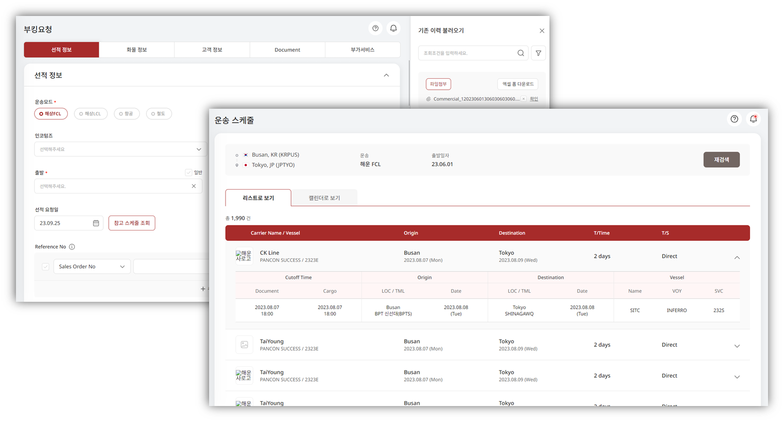 부킹 내역과 실제 선적 스케줄이 확정되기까지 담당자와 수많은 이메일과 연락이 따르던 단계들이 이제는 한 번의 클릭으로 막힘없이 처리됩니다. \